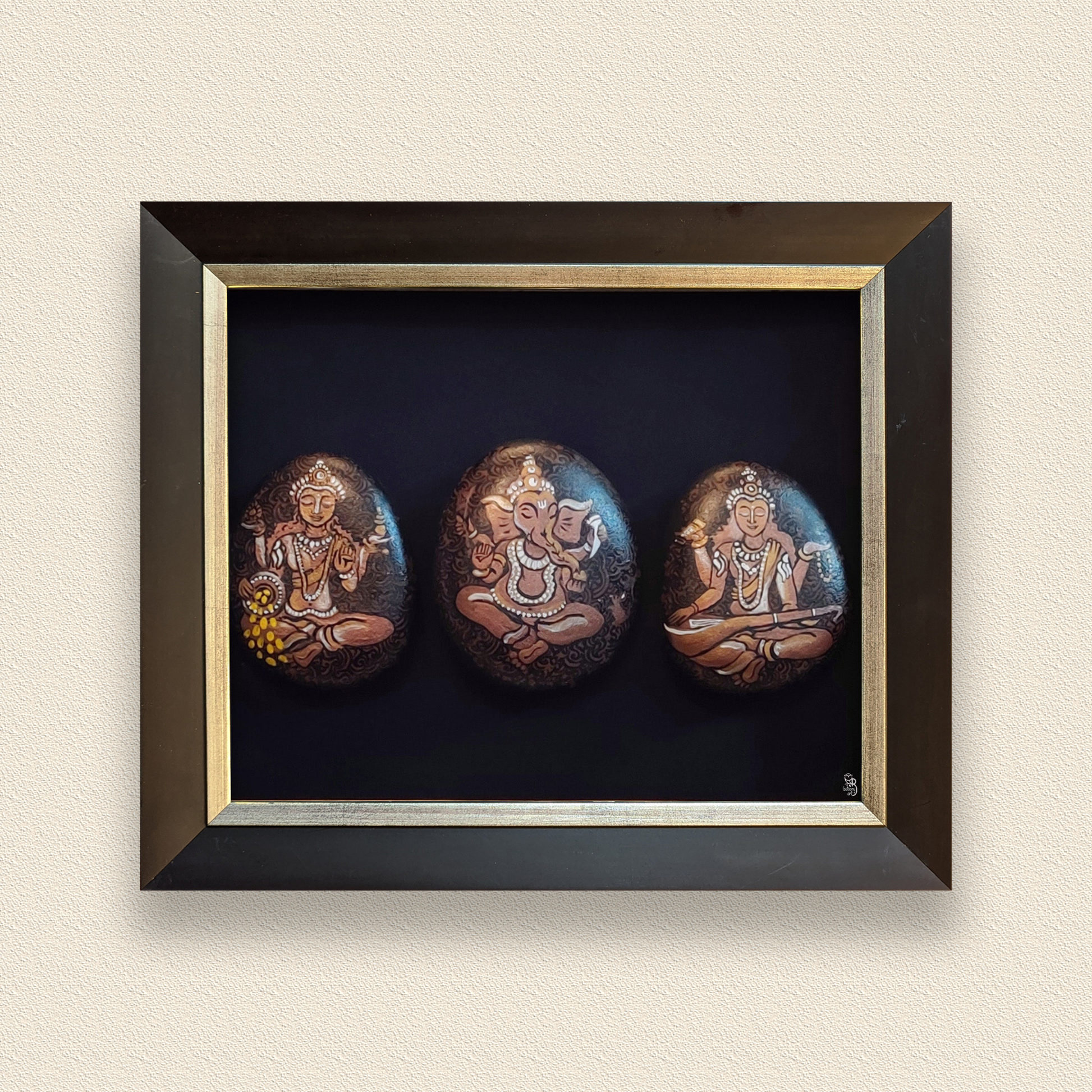 हमारे प्राचीन लक्ष्मी, गणेश और सरस्वती के साथ अपने घर में दिव्य सुंदरता लाएं, जो प्राकृतिक कंकड़ पर हाथ से चित्रित देवताओं की दिव्य त्रिमूर्ति है। हमारी कालातीत कलाकृति निश्चित रूप से किसी भी स्थान को भव्यता और लालित्य के स्पर्श से सुशोभित करेगी। अपने घर की सजावट में एक शानदार लेकिन आध्यात्मिक स्पर्श जोड़ने के लिए बिल्कुल सही।