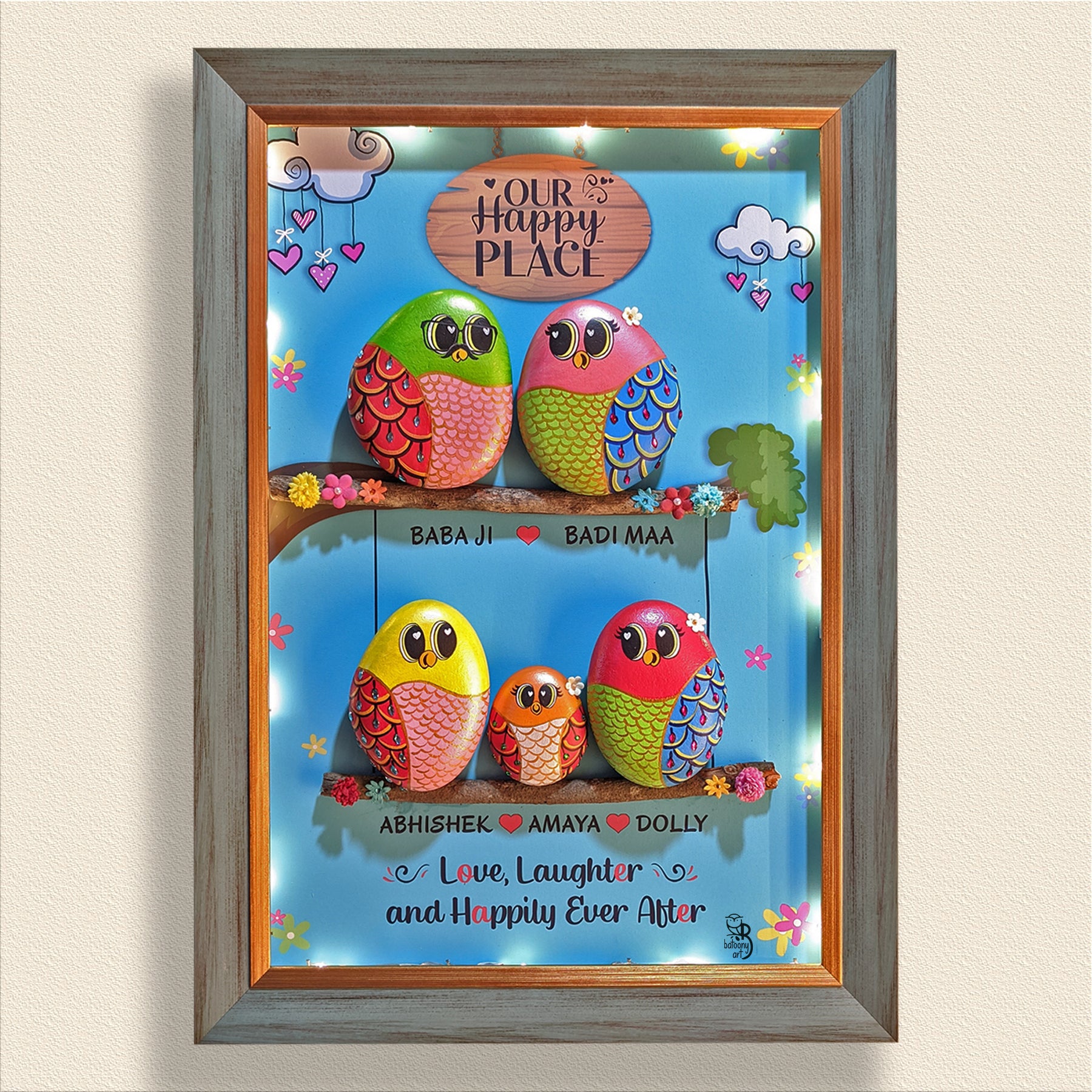 "हमारे 5 सदस्यों वाले परिवार के साथ प्यार का एक स्वर्ग बनाएं। लकड़ी से बना यह होम डेकोर पीस परिवार के बंधन का जश्न मनाता है, जिसमें जीवंत रंगों में हाथ से पेंट की गई कंकड़ कला शामिल है। एक खुशहाल घर के लिए बिल्कुल सही उपहार!"