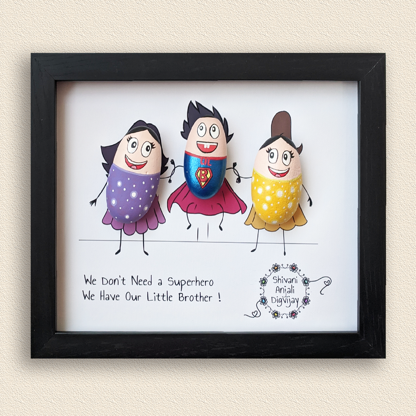 Celebrate your bond with your younger brother through a fun and thoughtful personalized gift. Designed with vibrant art pebbles, this keepsake captures the playful, protective, and loving relationship between siblings. A perfect gift for Raksha Bandhan, birthdays, or just to remind your little bro how much he means to you.