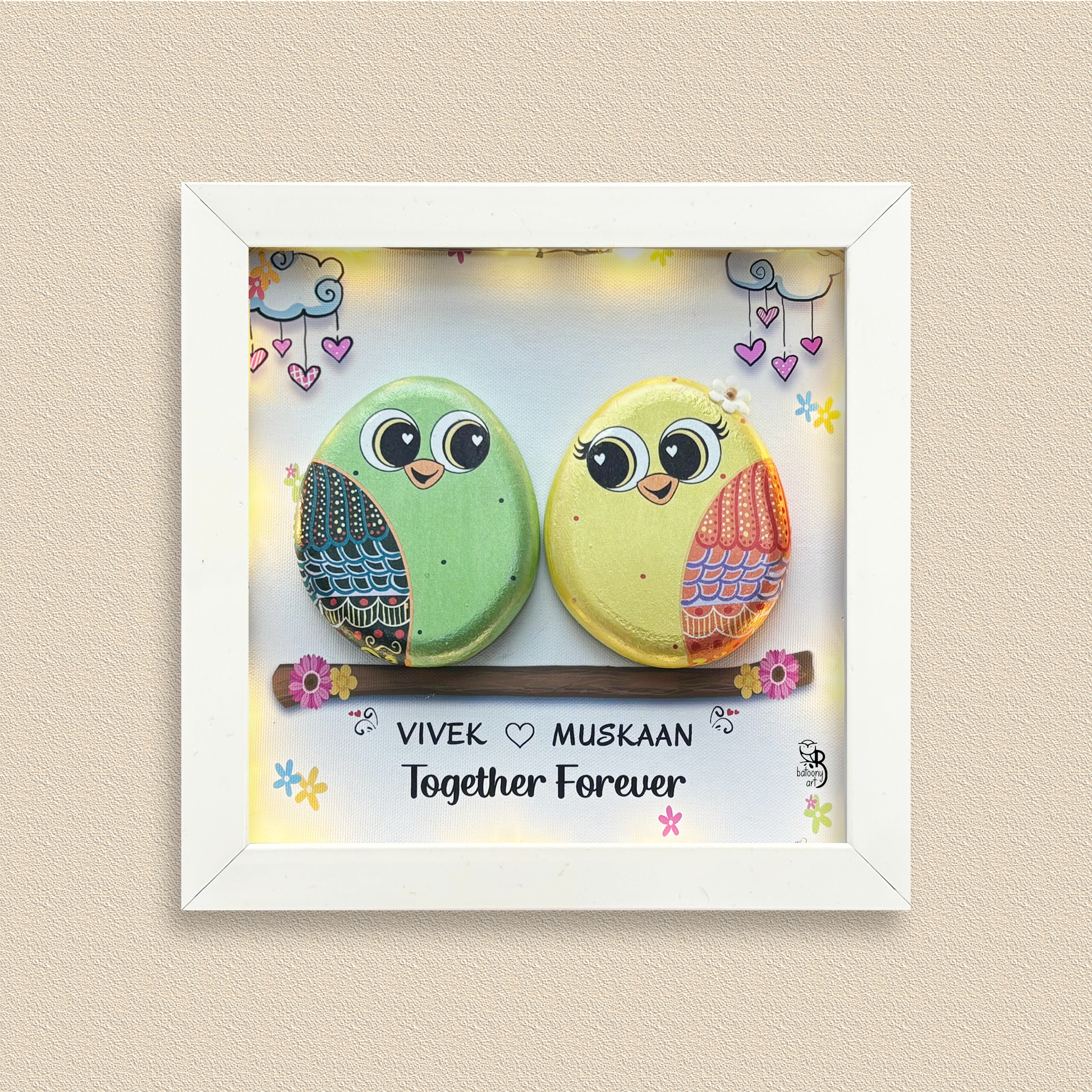 The lights on our pebble art frames are battery operated, providing a convenient and hassle-free way to illuminate the artwork. They do not require any plug points. We recommend to use lights only for occasions and not every day purpose.