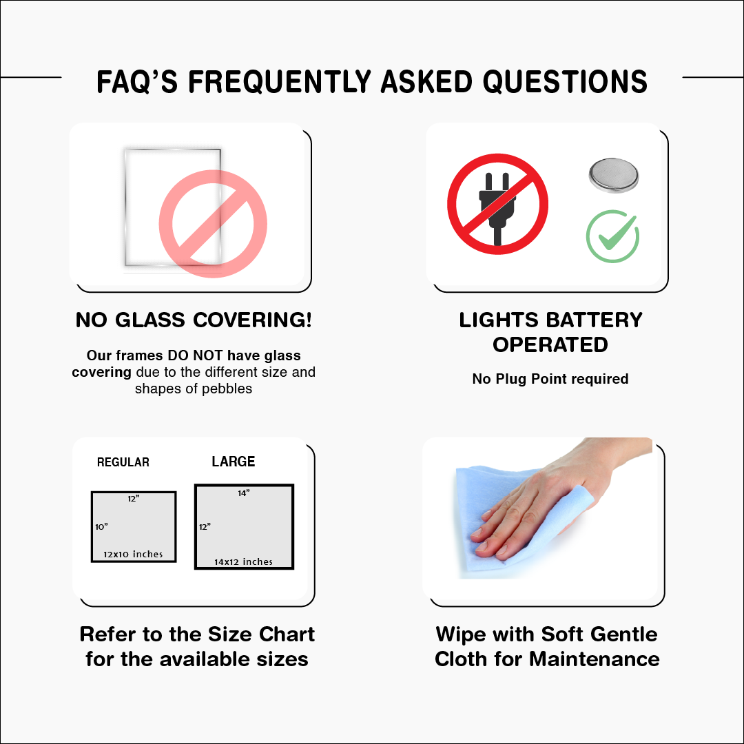 PLEASE NOTE: Our frames do NOT have glass covering due to the nature of pebbles and different size and shapes.