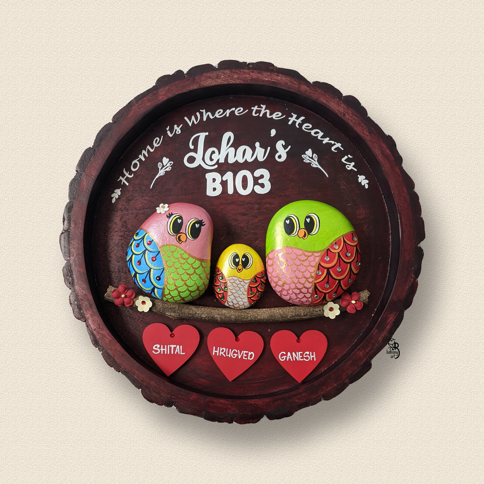 This delightfully handmade pebble art piece is sure to bring sweet memories of cherishing times with your family, all captured in a single frame on a piece of natural round wood! (It'll make your heart melt!)