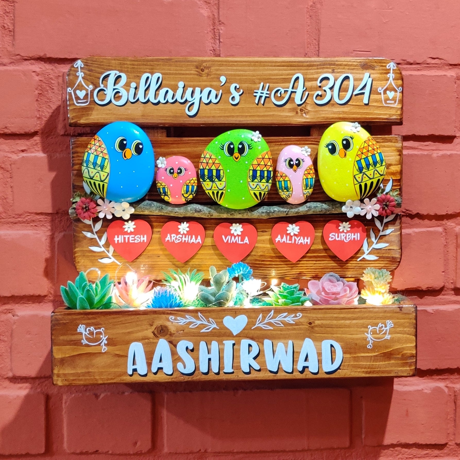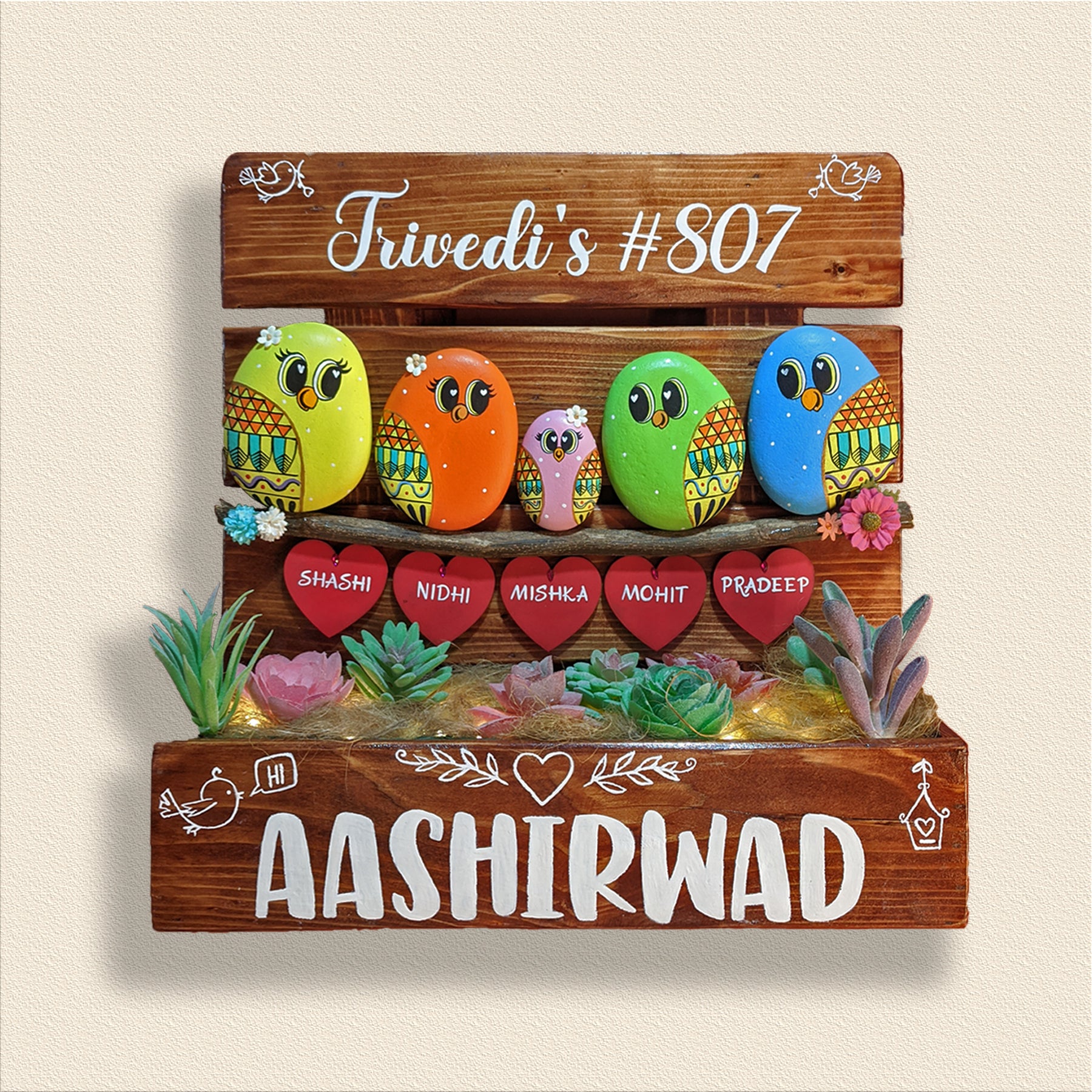Welcome the newest members of your family with these charming Family of 5 Plant Holders! Cute, lovely & oh-so-personalized - each holder is lovingly handpainted on natural pebbles and features a unique nameplate. Plus, they'll bring a bit of greenery into your home - and a lot of joy!