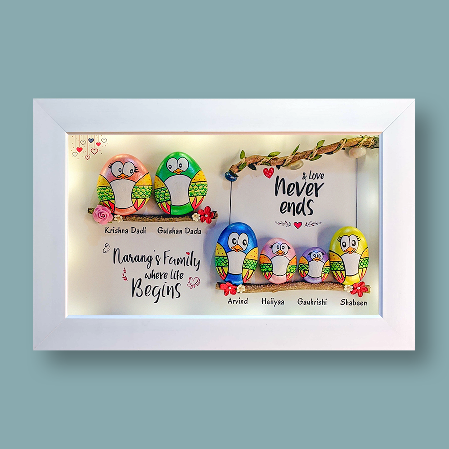 Elevate your home's warmth with our customizable family art piece. Crafted from wood, adorned with hand-painted pebble art, and bursting with vibrant colors. Celebrate love, commitment, and the joy of a larger family.