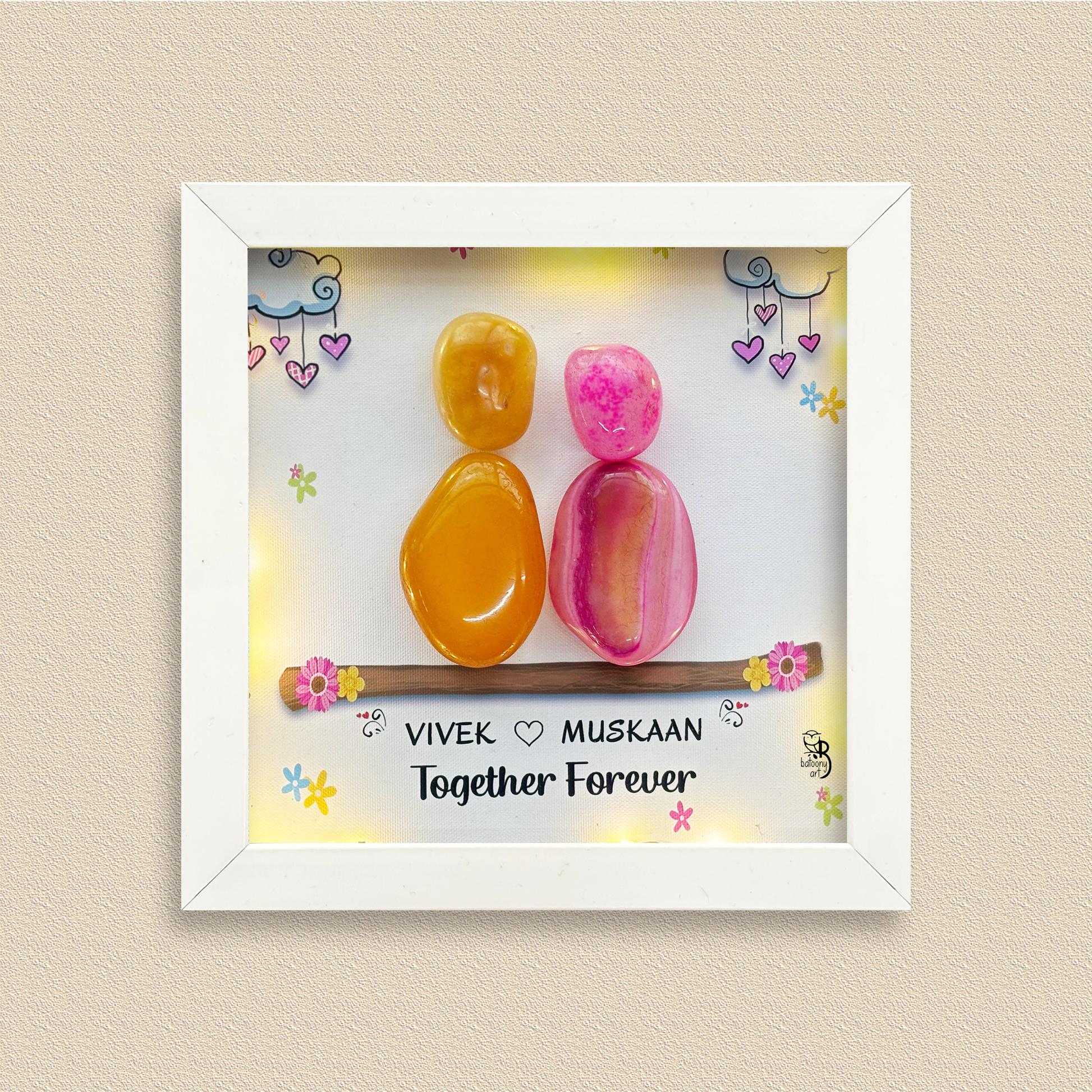 Batoony's unique and personalized hand-crafted pebble art require time for customization and creation.