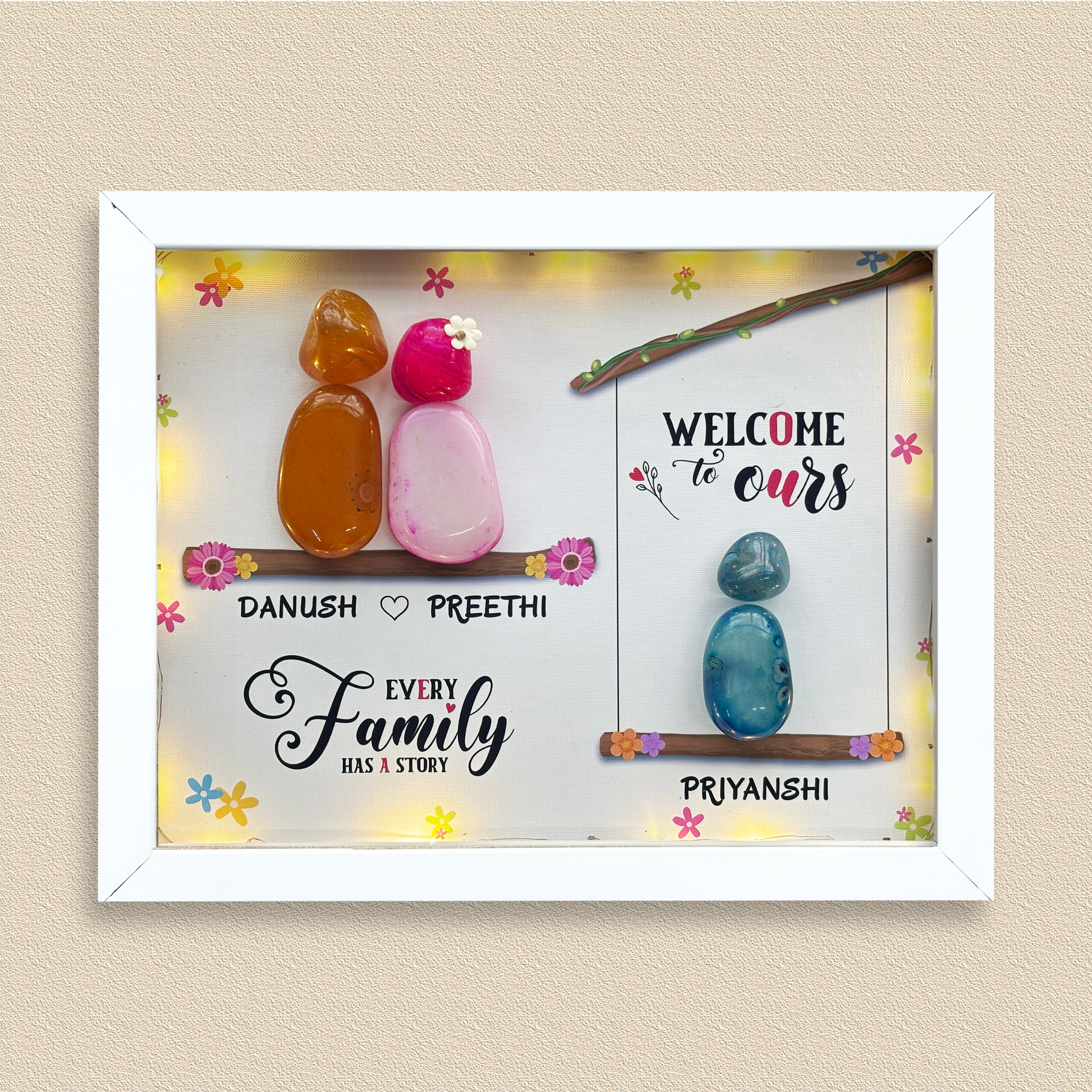 The lights on our pebble art frames are battery operated, providing a convenient and hassle-free way to illuminate the artwork. They do not require any plug points. We recommend to use lights only for occasions and not every day purpose.