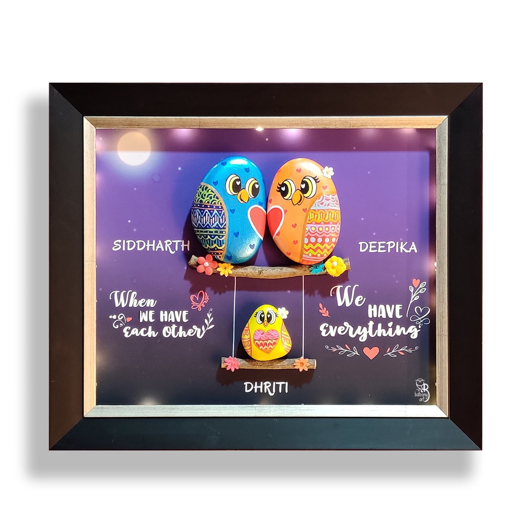 Bring the glistening spirit of a cozy night under the stars into your home with this handmade pebble art featuring a family of 3! Cherish the sweet memories with this unique home decor - delight in the comfort of a moonlit sky indoors!