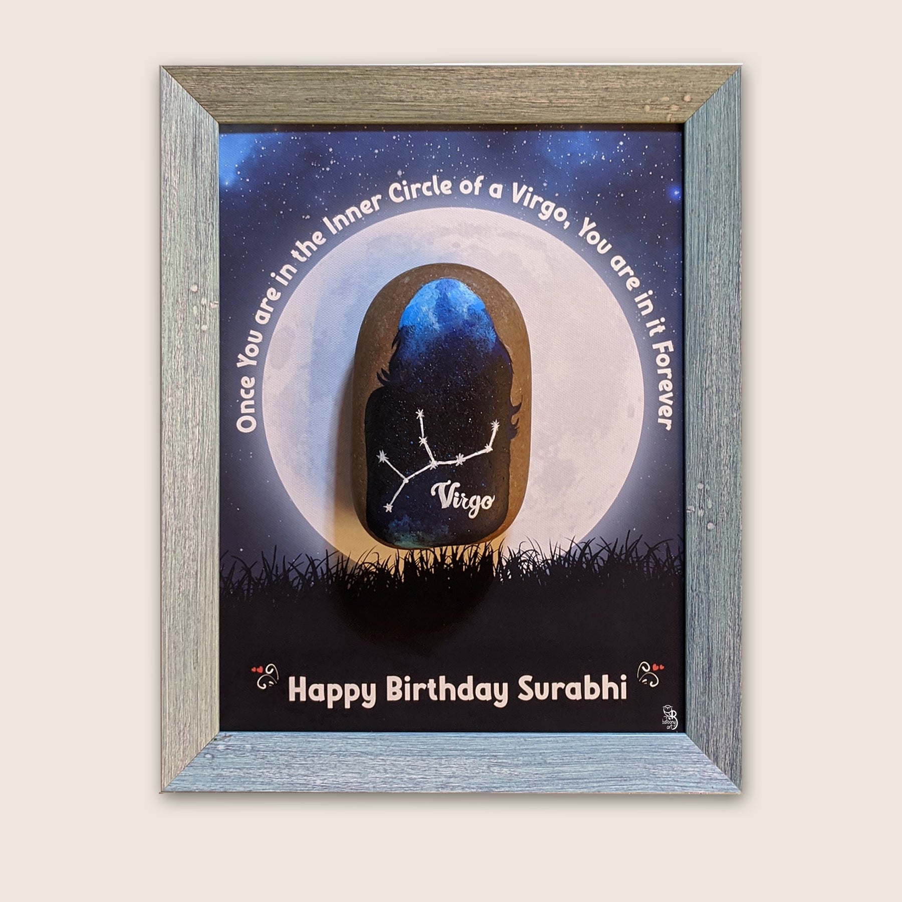 Celebrate the enduring bond with this Virgo-inspired home decor piece. Crafted from wood, adorned with hand-painted pebble art in vibrant colors. Symbolizing everlasting love and joy within the inner circle of a Virgo.
