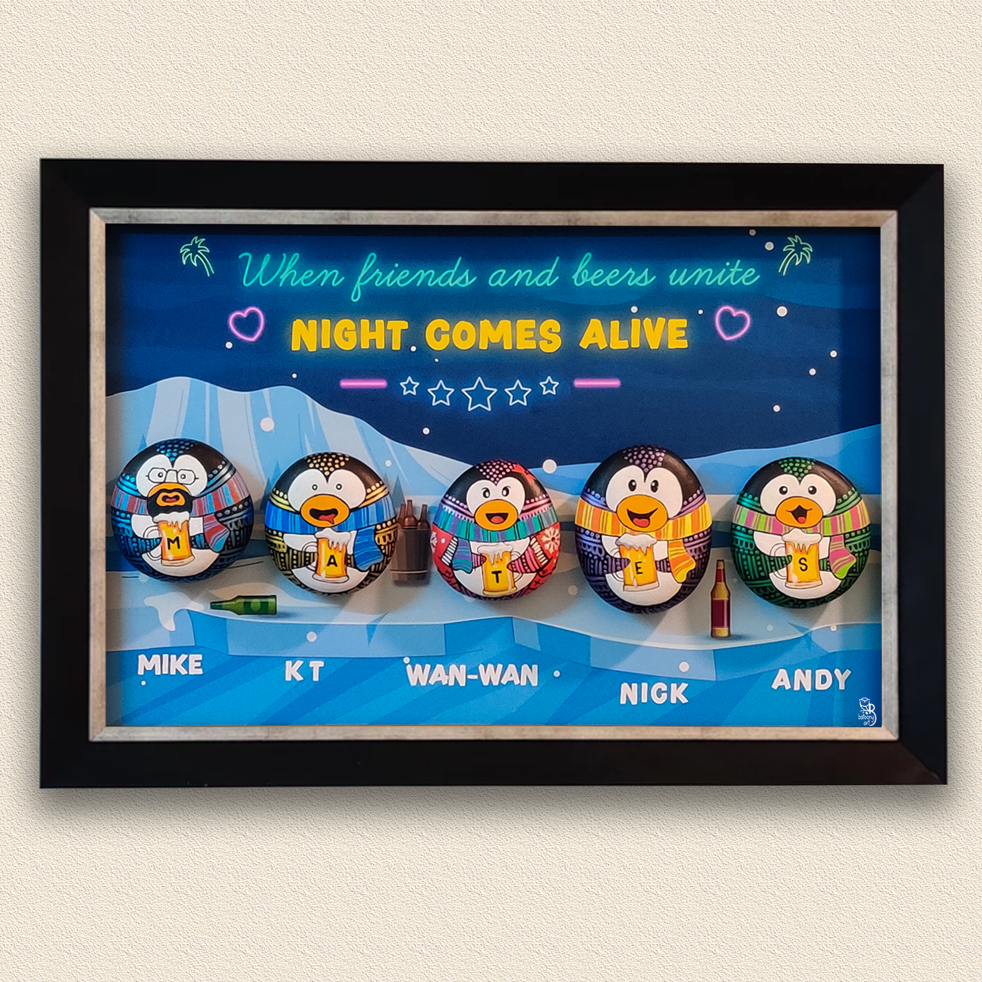 "When friends and beer unite, night comes alive" is a wood-crafted home decor piece, adorned with hand-painted pebble art in vibrant colors. Perfect for gifting, it celebrates the joy, camaraderie, and happiness shared over a cold brew with friends. Cheers to unforgettable nights and everlasting bonds!