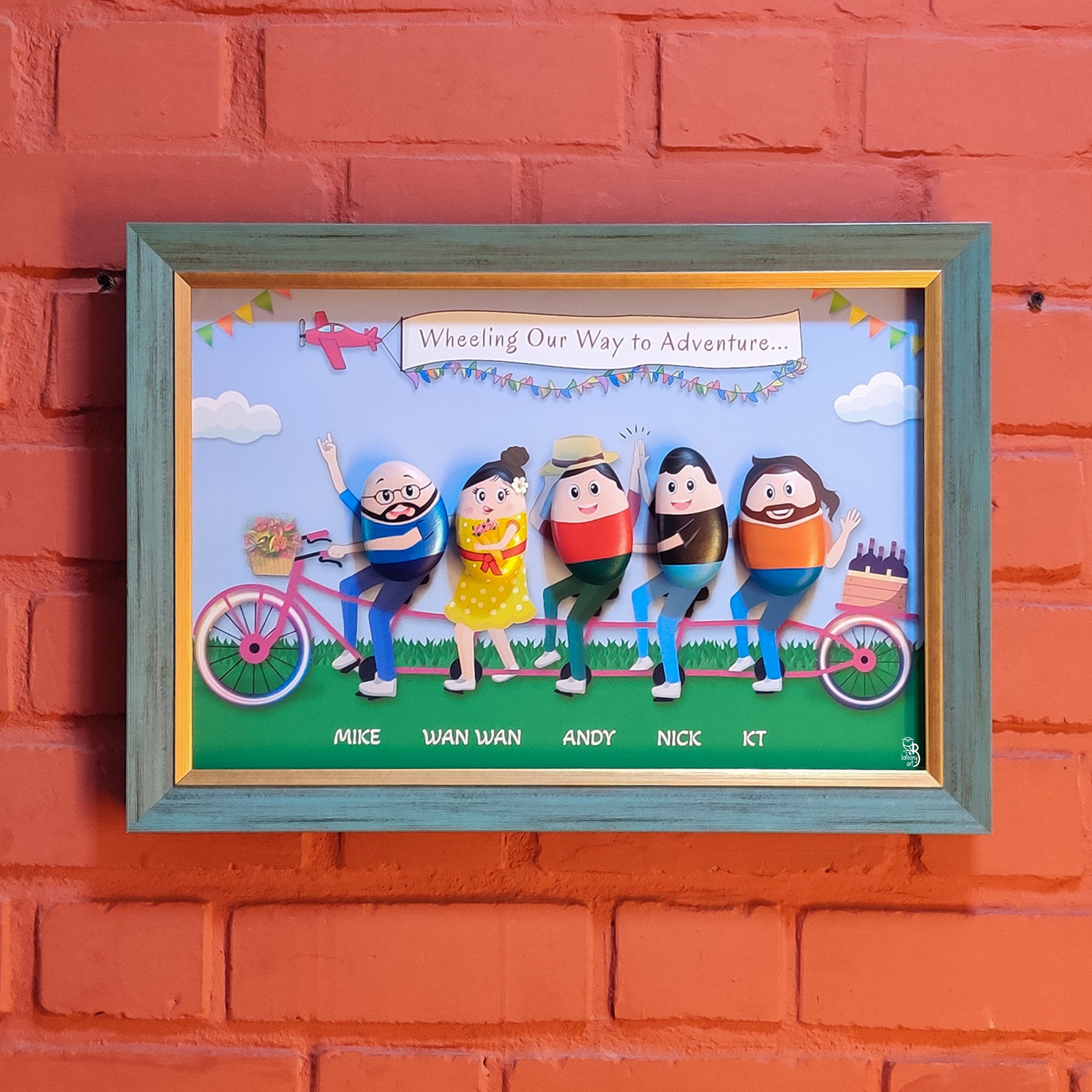 "Embark on a visual journey with 'Wheeling Our Way to Adventure.' This vibrant, hand-painted pebble art on wood celebrates friendship, capturing the joy of shared moments and the colorful tapestry of togetherness."